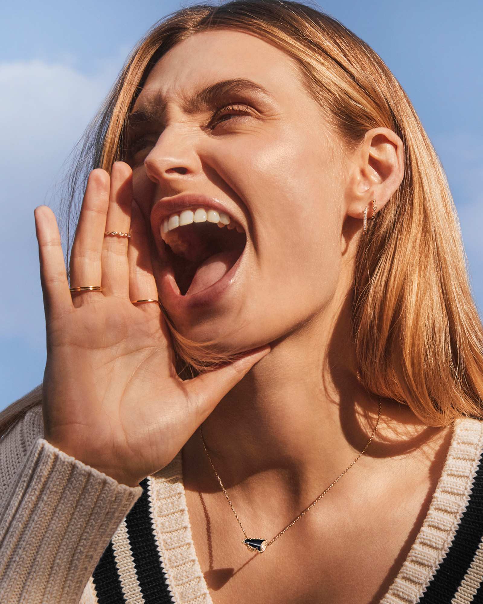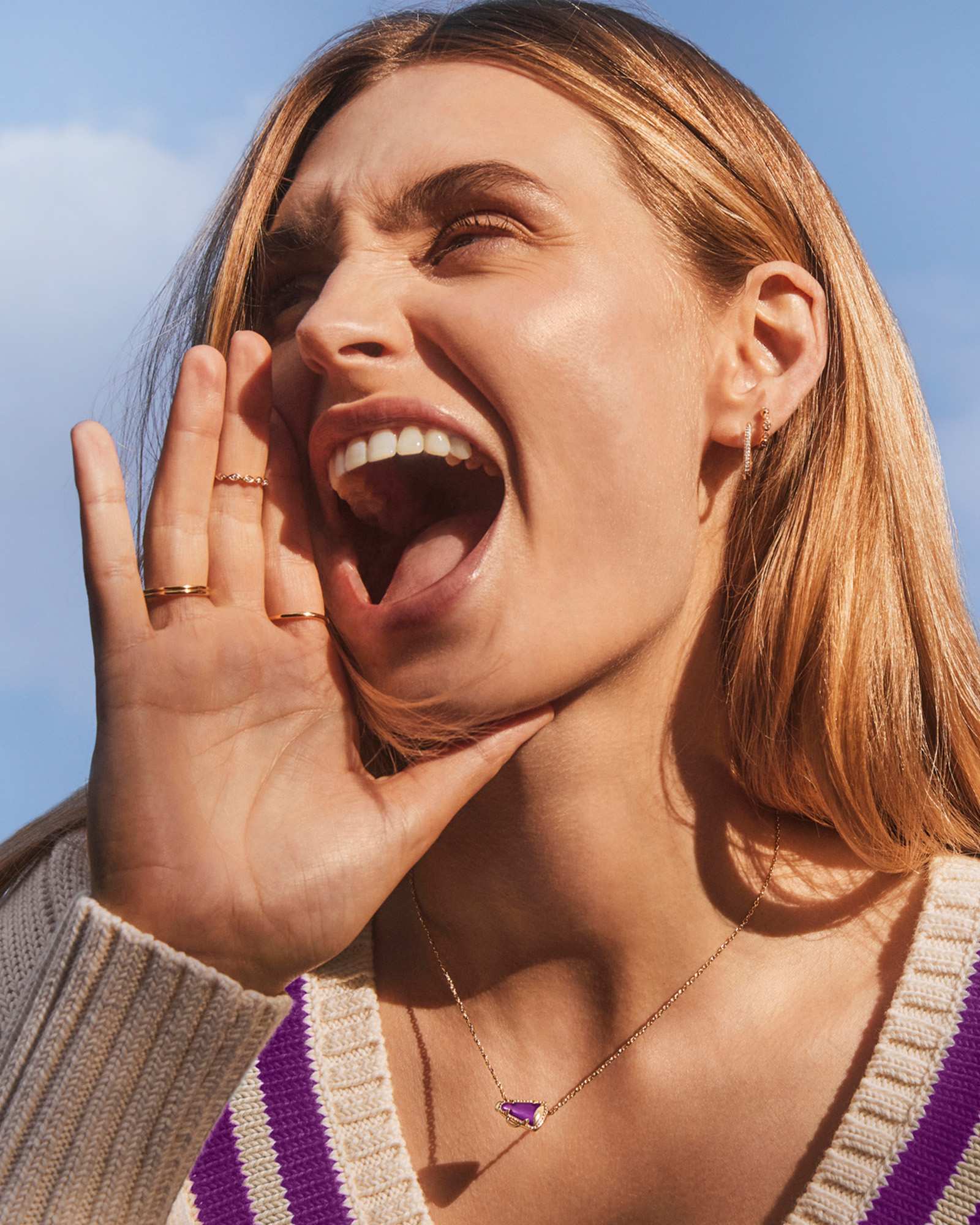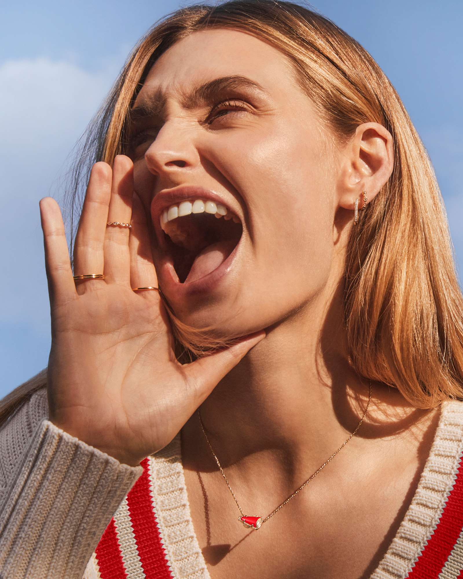 Give me a K! Give me an S! Give me a Cheer Gold Short Pendant Necklace! Minimal but full of cheer, this adorable megaphone pendant is framed by our signature hoofprint detailing for that special KS touch. Stack up some extra spirit and pair this pendant with styles in your team’s colors.