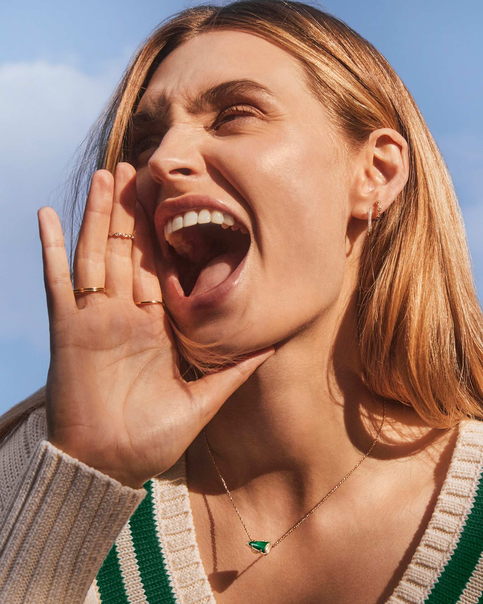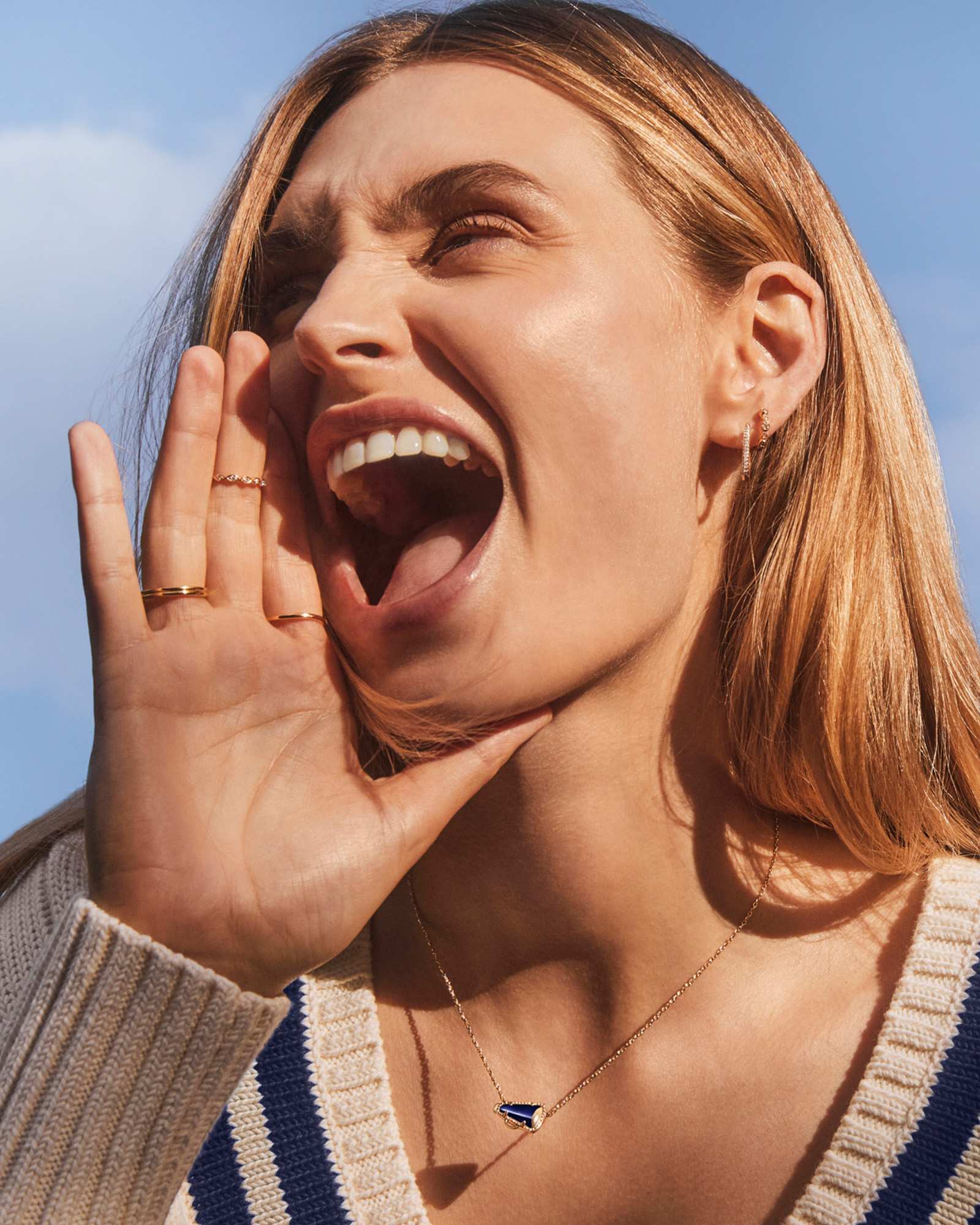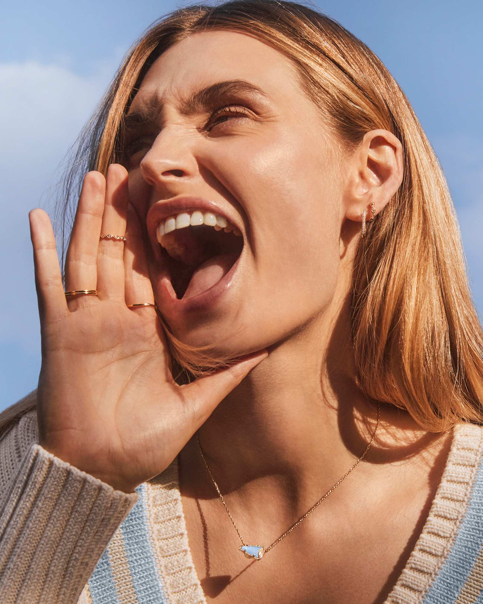 Give me a K! Give me an S! Give me a Cheer Gold Short Pendant Necklace! Minimal but full of cheer, this adorable megaphone pendant is framed by our signature hoofprint detailing for that special KS touch. Stack up some extra spirit and pair this pendant with styles in your team’s colors.
