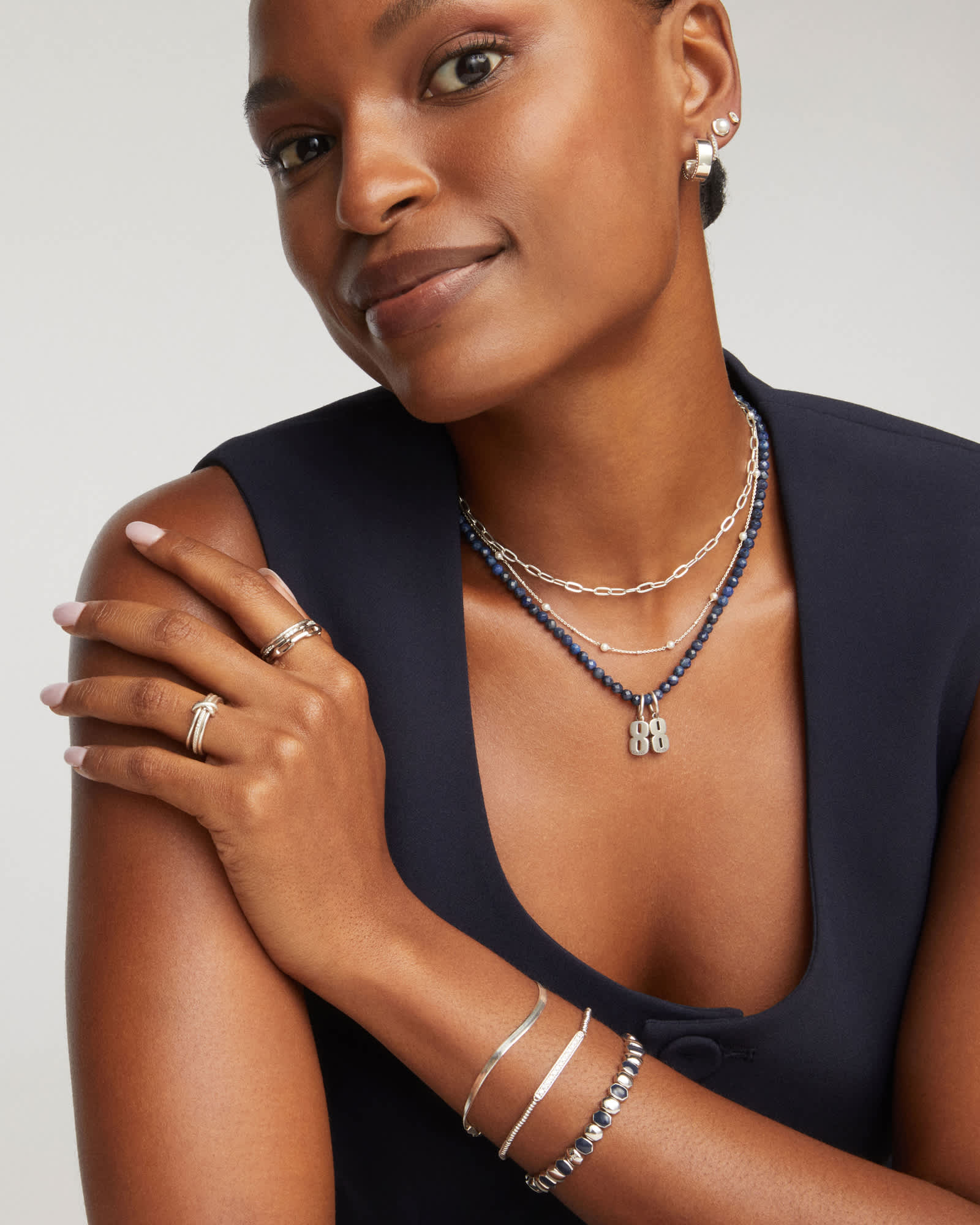 Our Sterling Silver collection features elevated styles to wear time and time again. With a base of both pure silver and copper, Sterling Silver provides a precious yet affordable option that offers long-lasting wear and shine and is the perfect addition to your Demi-Fine jewelry rotation.Learn More About Metals & Care