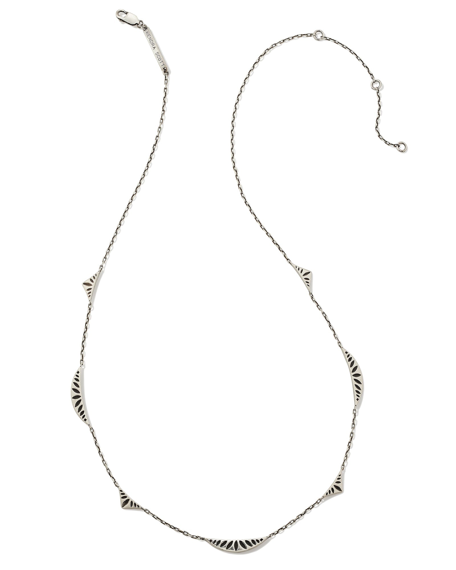 Wanting to add some unique dimension to your necklace stack? Look no further than the Sophee Strand Necklace in Oxidized Sterling Silver. Crafted in long-lasting metal, this strand features rounded and triangular ridges with a hoofprint design, a signature brand detail. Instantly eye-catching, this necklace will add a fun spin to your everyday layers. This necklace is a part of Yellow Rose by Kendra Scott—a brand that celebrates ranch life with Kendra Scott staples alongside select curated jewelry pieces and accessories.