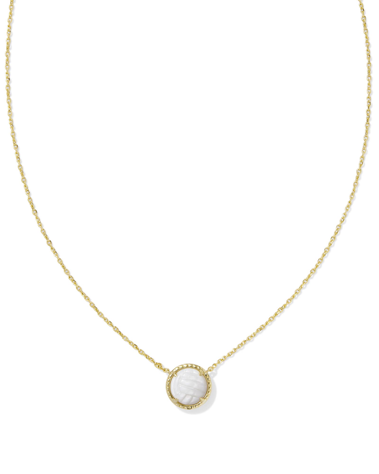 You asked, so we delivered! Get set for a winning look with the Volleyball Gold Short Pendant Necklace in White Mother-of-Pearl. Framed by our signature hoofprint detailing, this mother-of-pearl pendant is carved with the textured lines of a volleyball. Spirited yet chic, this pendant’s the perfect way to match your teammates off the court.